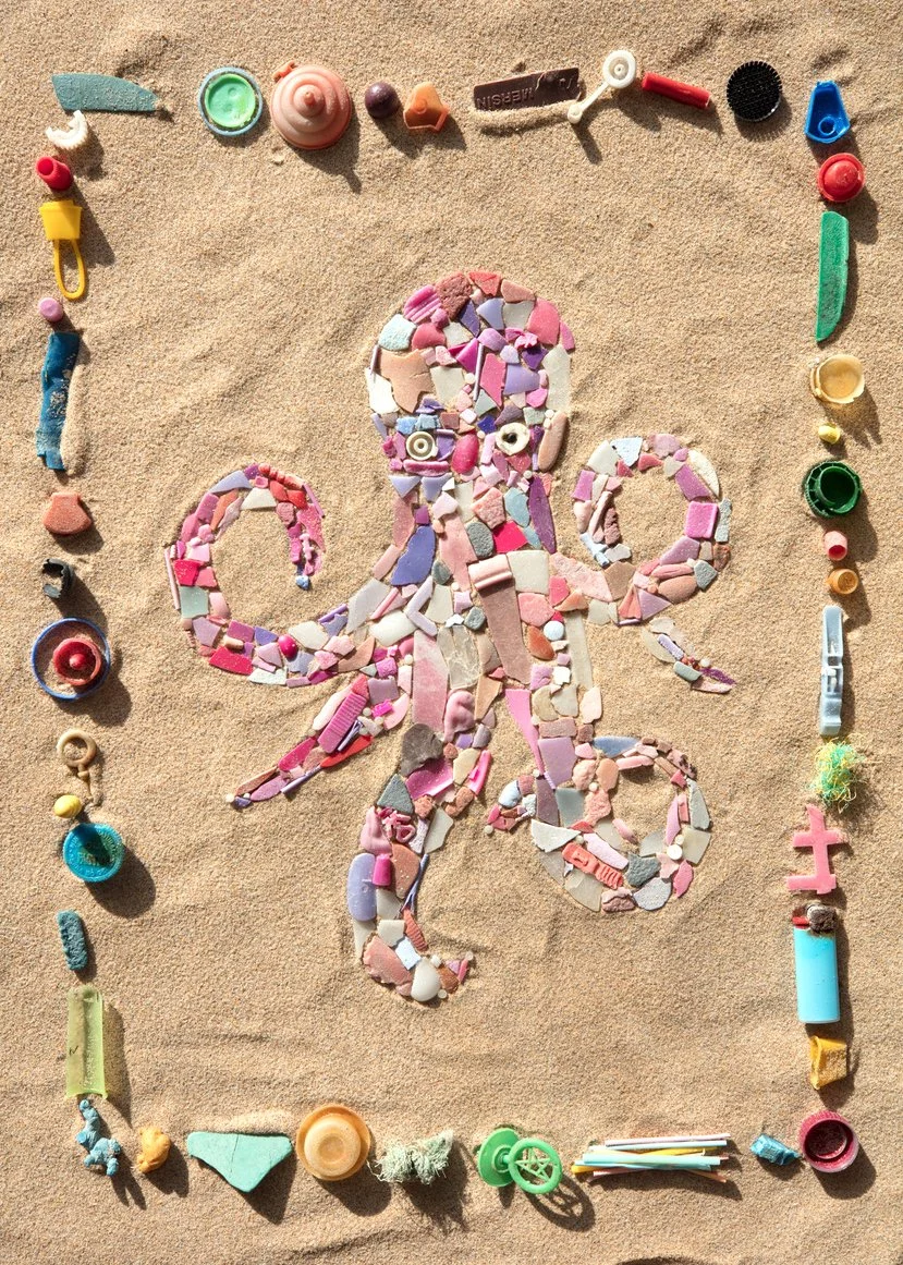 Kleine Fundstücke am Strand. Zivilisationsmüll, verwandelt in Poesie. Freie Arbeit.
